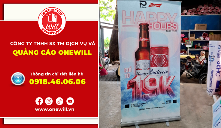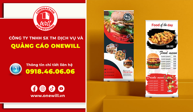 - Đa dạng giải pháp: Từ standee, poster, banner, wobbler, kệ trưng bày đến hộp đèn, Onewill đều có thể đáp ứng linh hoạt theo nhu cầu.
