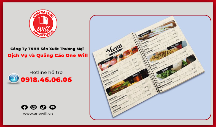 Bạn đang tìm kiếm một đơn vị thiết kế và in ấn menu đóng cuốn lò xo cho ngành F&B chuyên nghiệp tại TP.HCM? Onewill tự hào là đối tác tin cậy, mang đến giải pháp toàn diện với sự chuyên nghiệp, tận tâm và dịch vụ tư vấn chu đáo, giúp biến ý tưởng của bạn thành những sản phẩm in ấn ấn tượng nhất. Tại Onewill, chúng tôi hiểu rằng mỗi dự án in ấn đều mang một ý nghĩa riêng. Đó là lý do vì sao đội ngũ của chúng tôi luôn đặt sự chuyên nghiệp và tận tâm lên hàng đầu trong mọi khâu.
