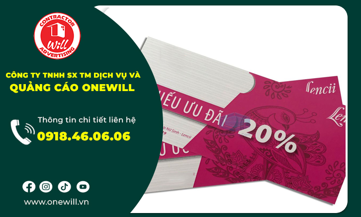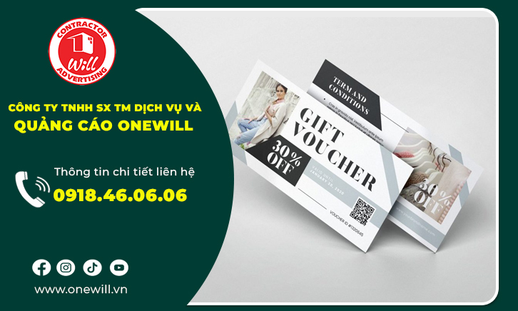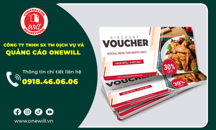 Liên hệ với Onewill để sở hữu những ấn phẩm voucher chất lượng cao, thiết kế đột phá, giúp doanh nghiệp của bạn tăng trưởng doanh số mạnh mẽ thông qua các ưu đãi hấp dẫn!