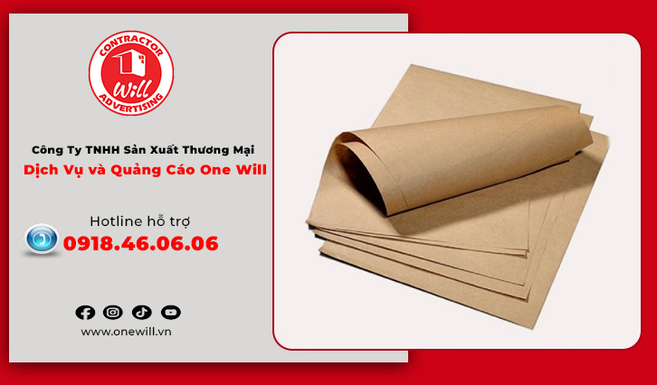 • Giấy Kraft: Màu nâu tự nhiên, thân thiện môi trường, thường dùng làm túi giấy, bao bì hoặc sản phẩm thủ công.