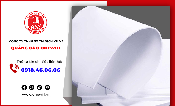 - Trong nhà (Indoor): giấy couche, giấy ảnh, decal PP, foam board, backlit film.